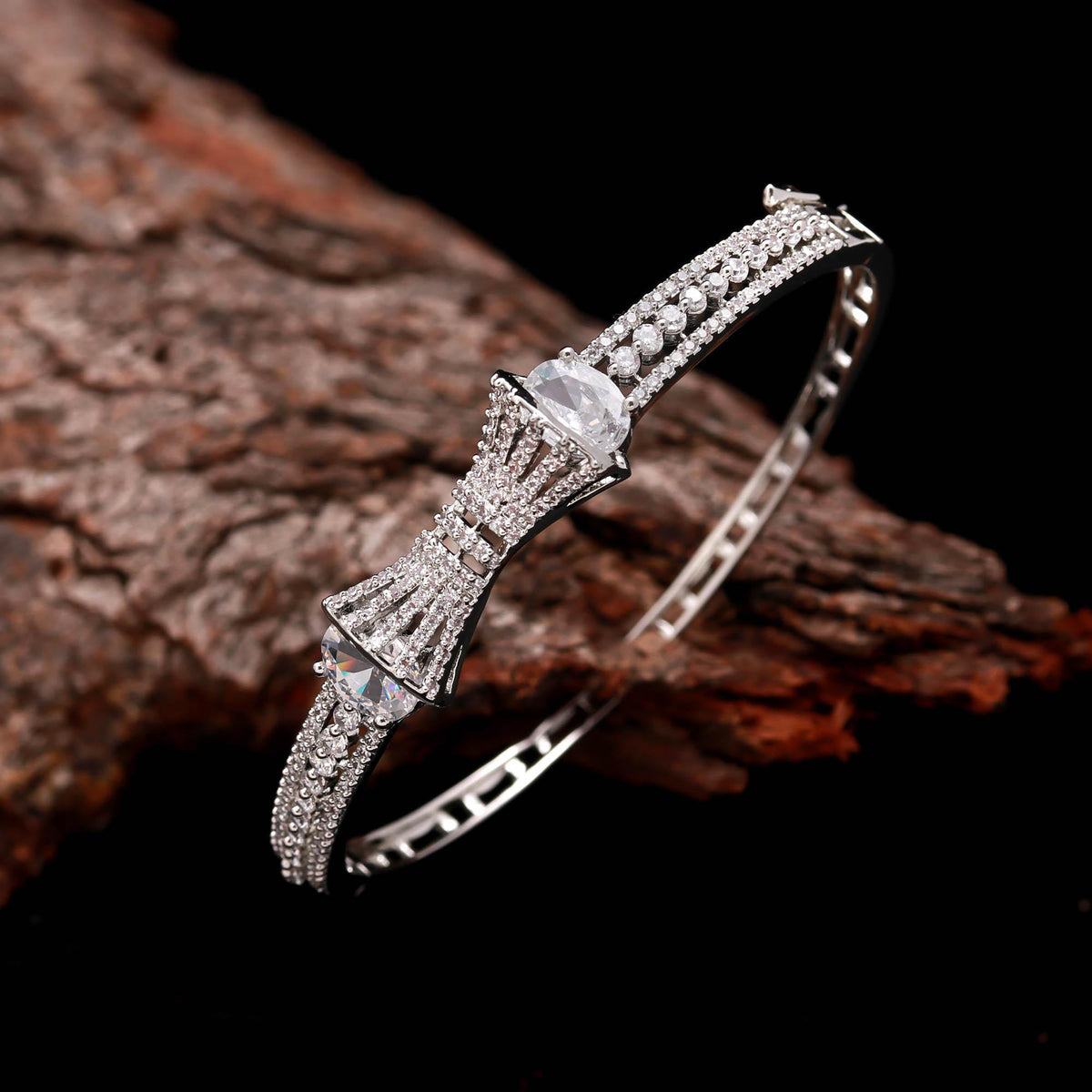 Confidence starts with the clasp. The Secure Snap Kada features a highly engineered Box Clasp that locks firmly into place, offering peace of mind for active wear. The smooth, contoured interior makes it a genuine Comfort-Fit piece. Layered with durable, Anti-Tarnish silver-tone plating, this kada keeps its high-lustre finish, and its brilliant CZ Stones secure. It's security, comfort, and enduring style, all in one.