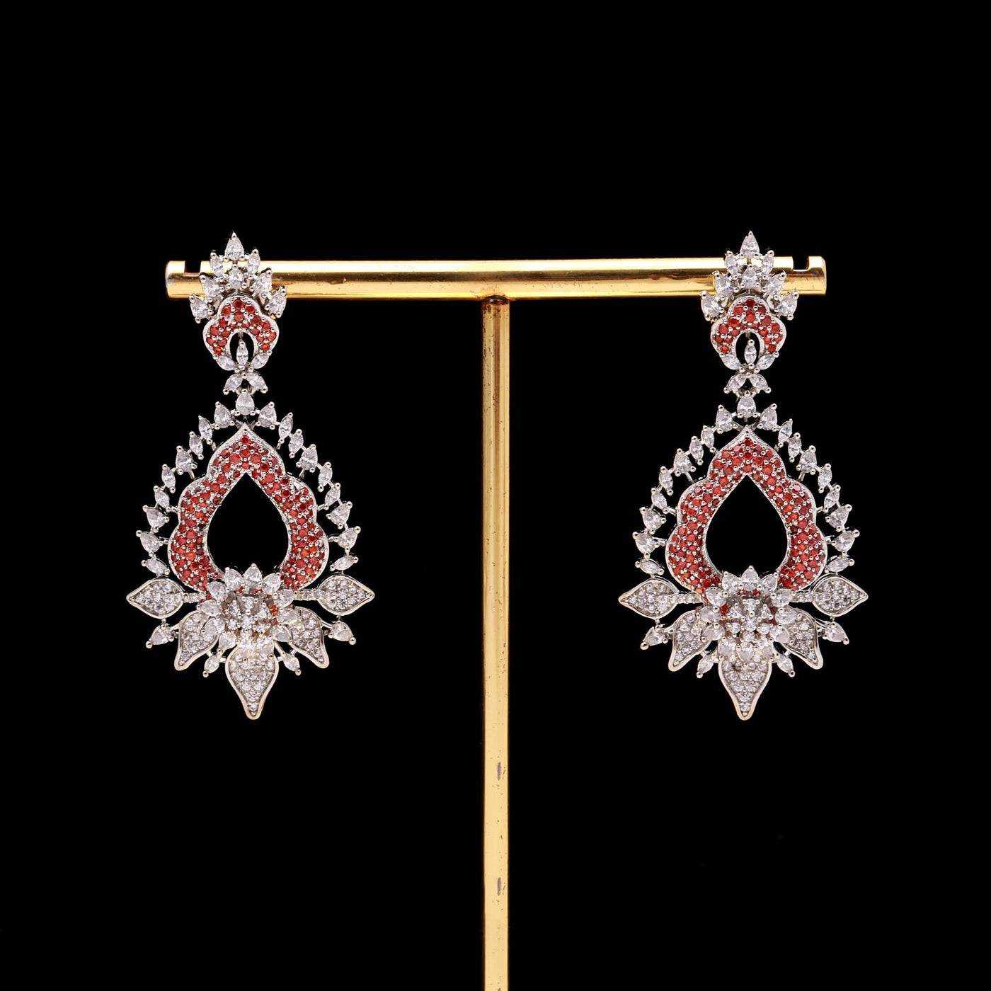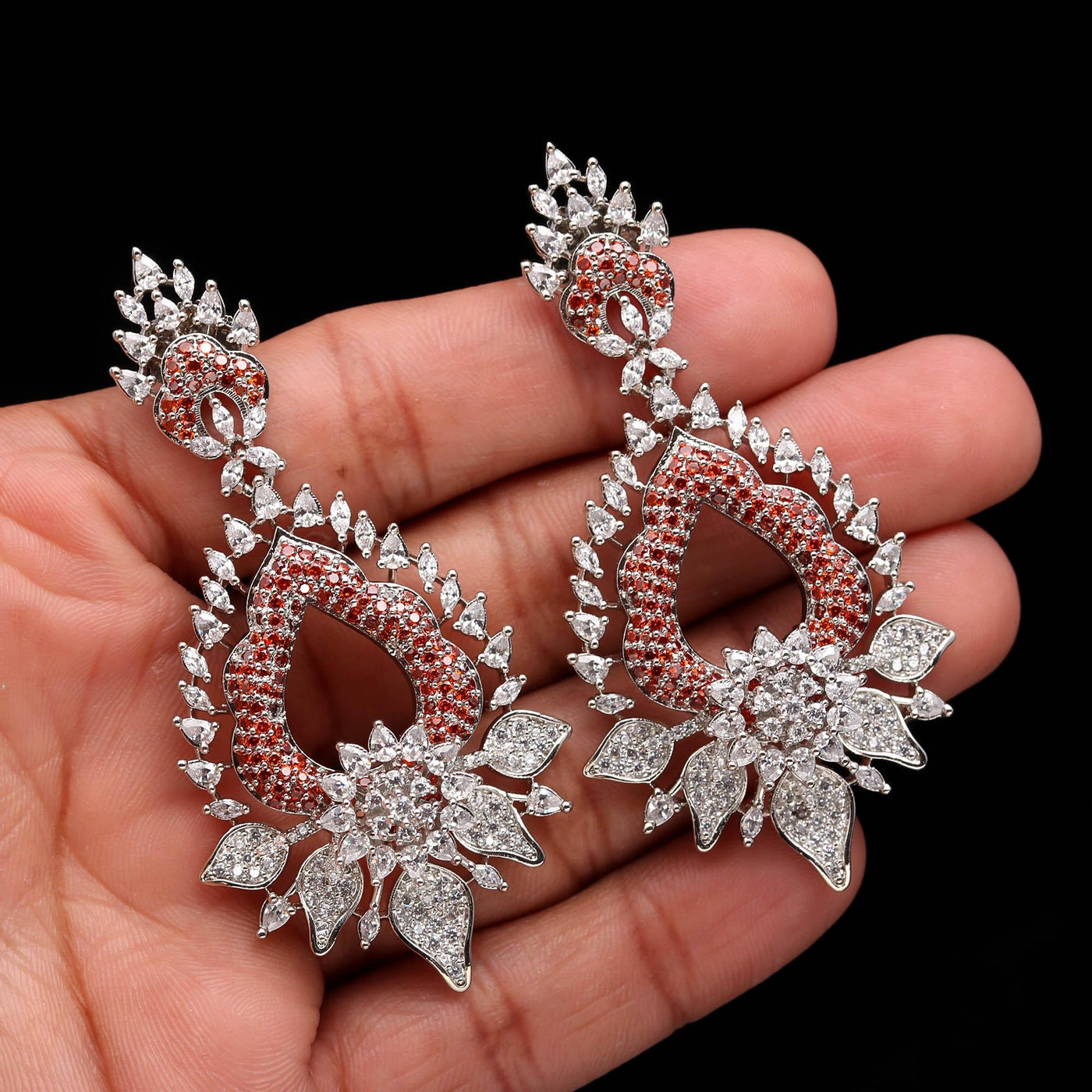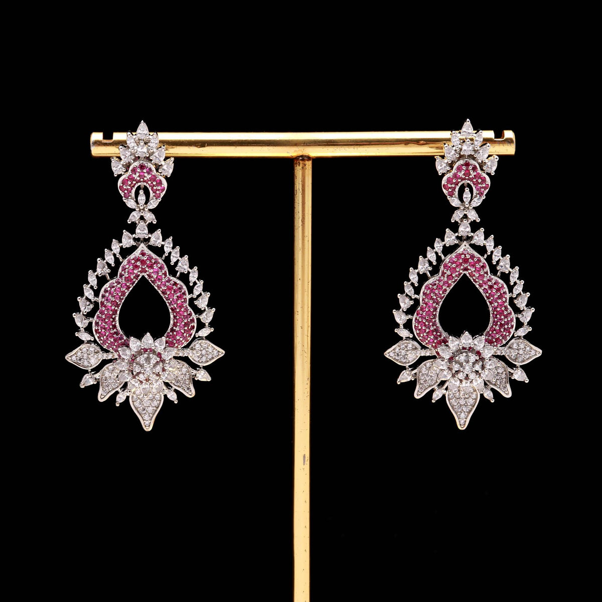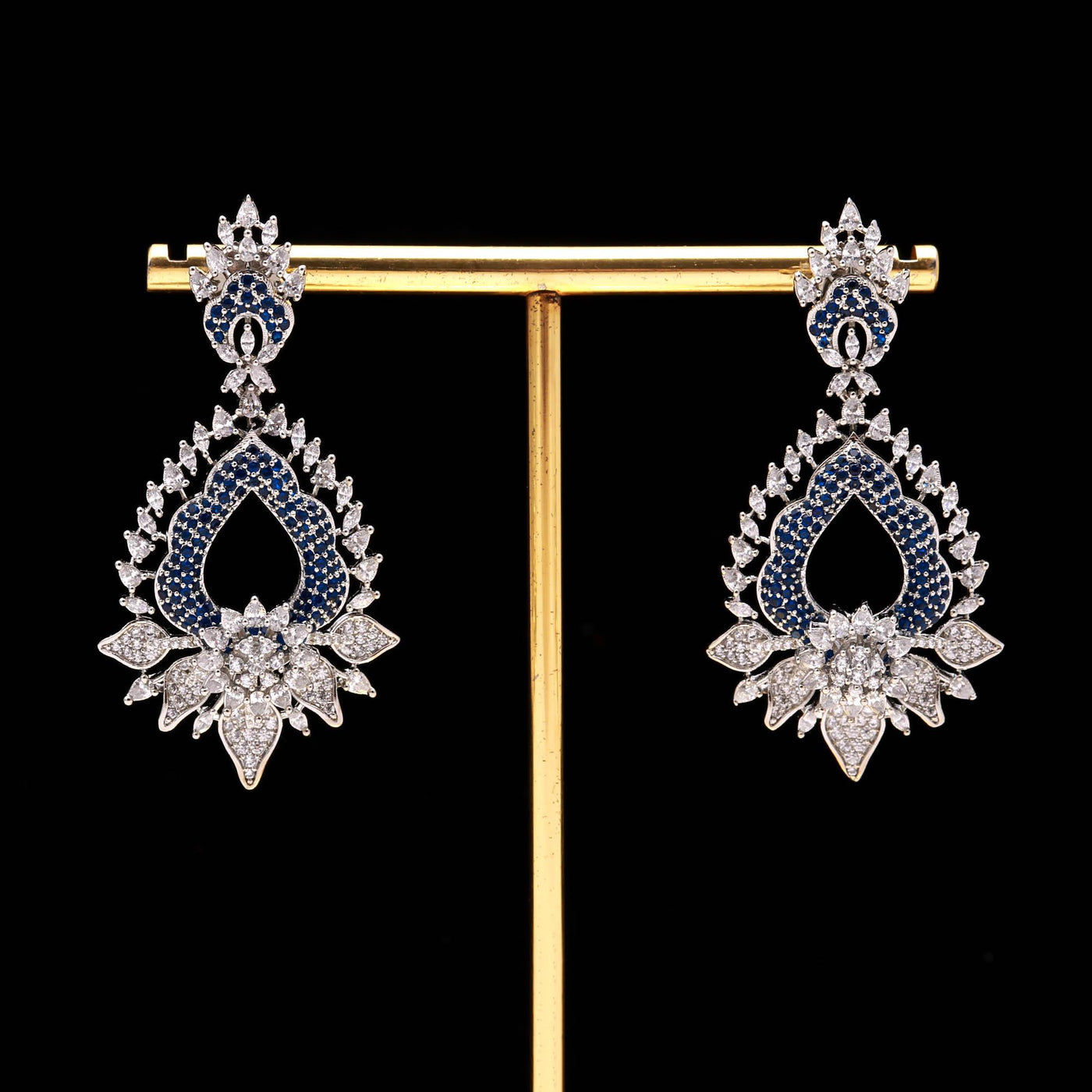 Magnificent Sapphire Blue and White American Diamond (AD) Heart-Shaped Dangler Earrings | Luxury Floral Statement - Blue