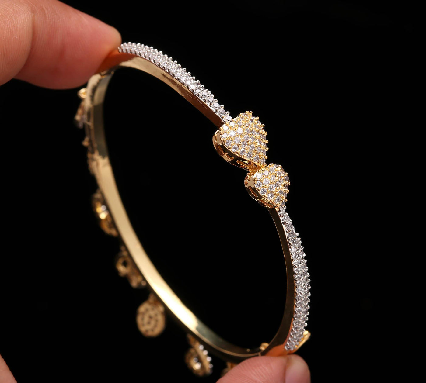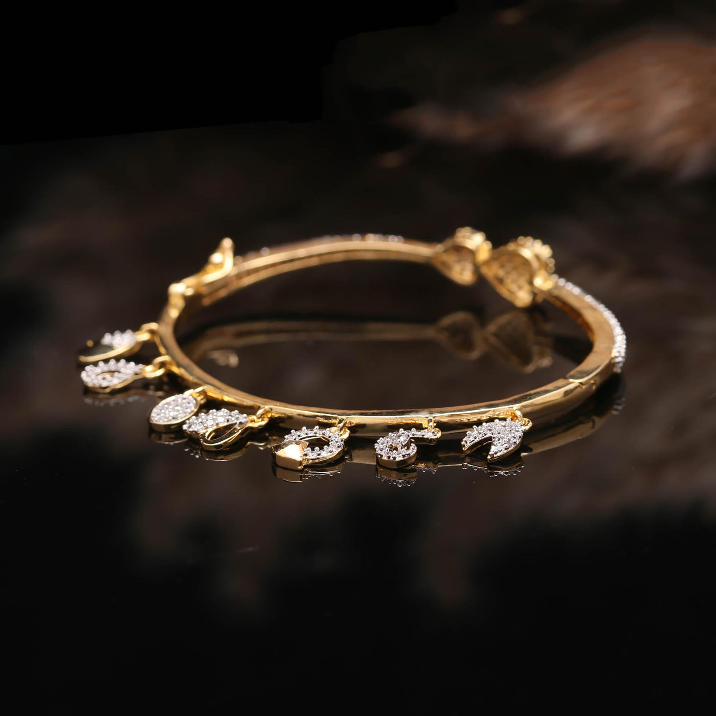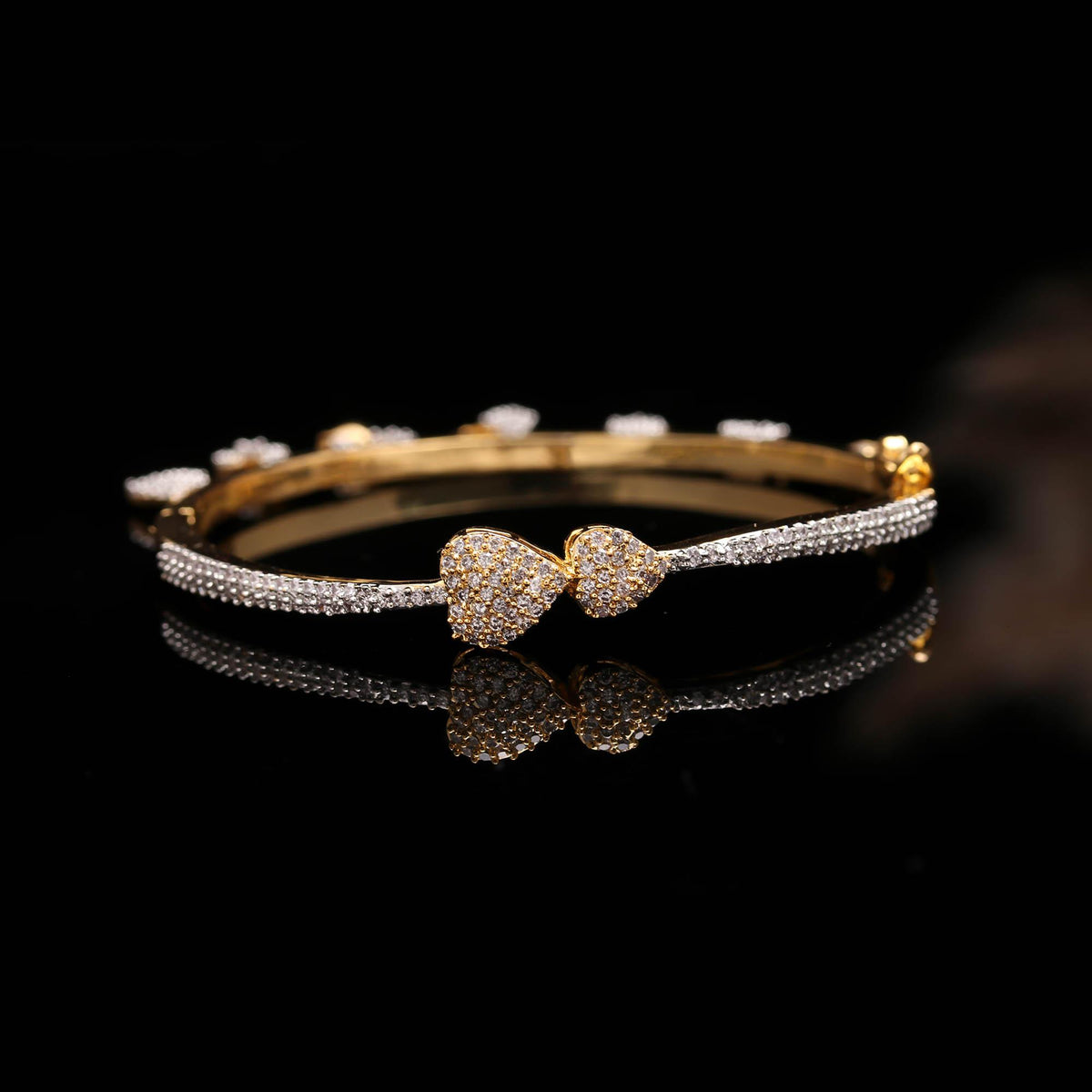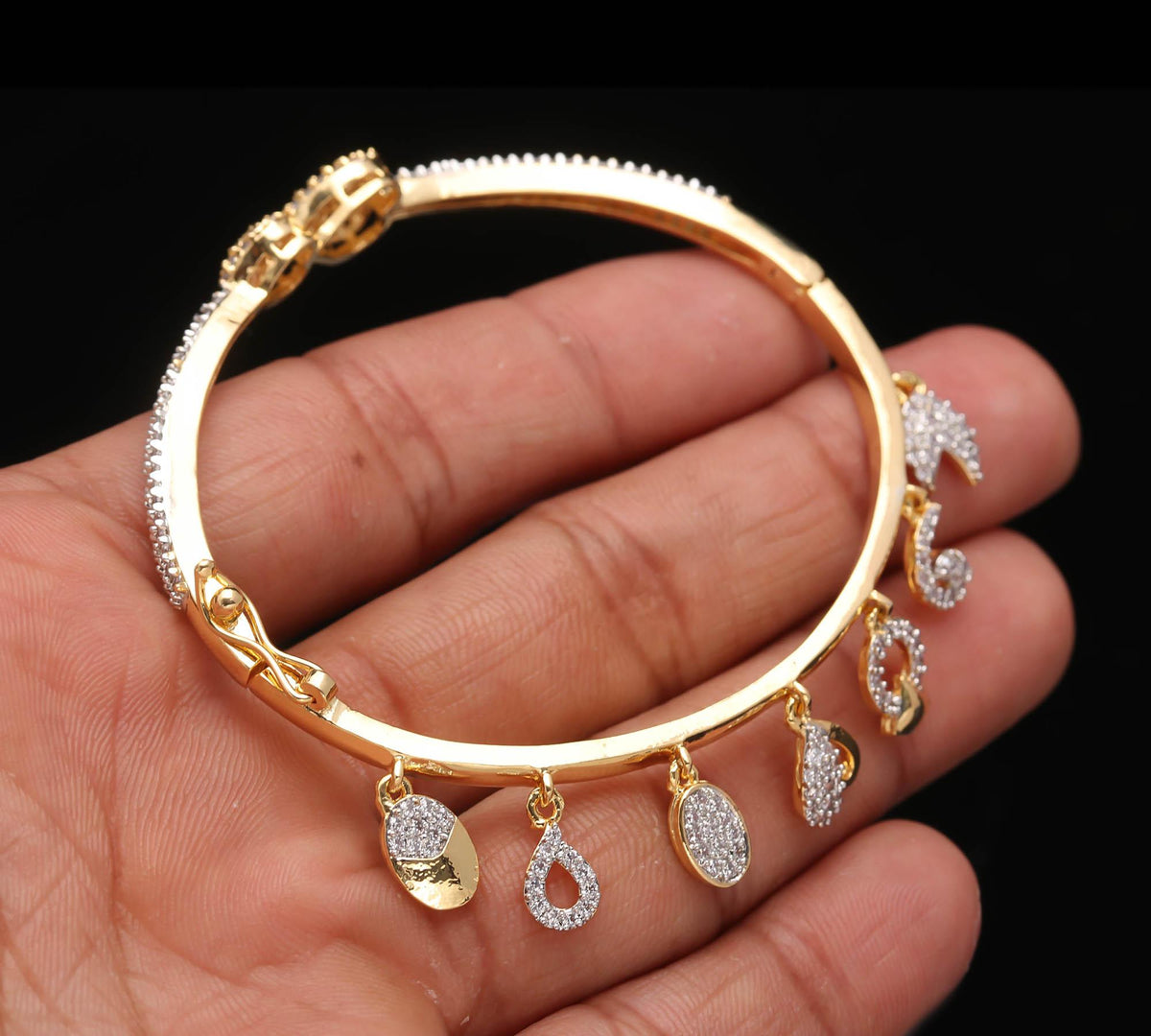 The Calibrated Edge is a tribute to precision engineering in jewelry. Its striking silhouette is defined by clean lines and beveled edges that perfectly frame the calibrated, perfectly spaced American Diamonds. This Modern Kada uses a unique tension setting (hypothetical) to secure the AD Stones, giving a seamless flow of gold and sparkle. The entire surface is treated with our Anti-Tarnish clear coat, locking in the brilliance and protecting the immaculate finish from dulling. It's where contemporary art meets wearable technology.