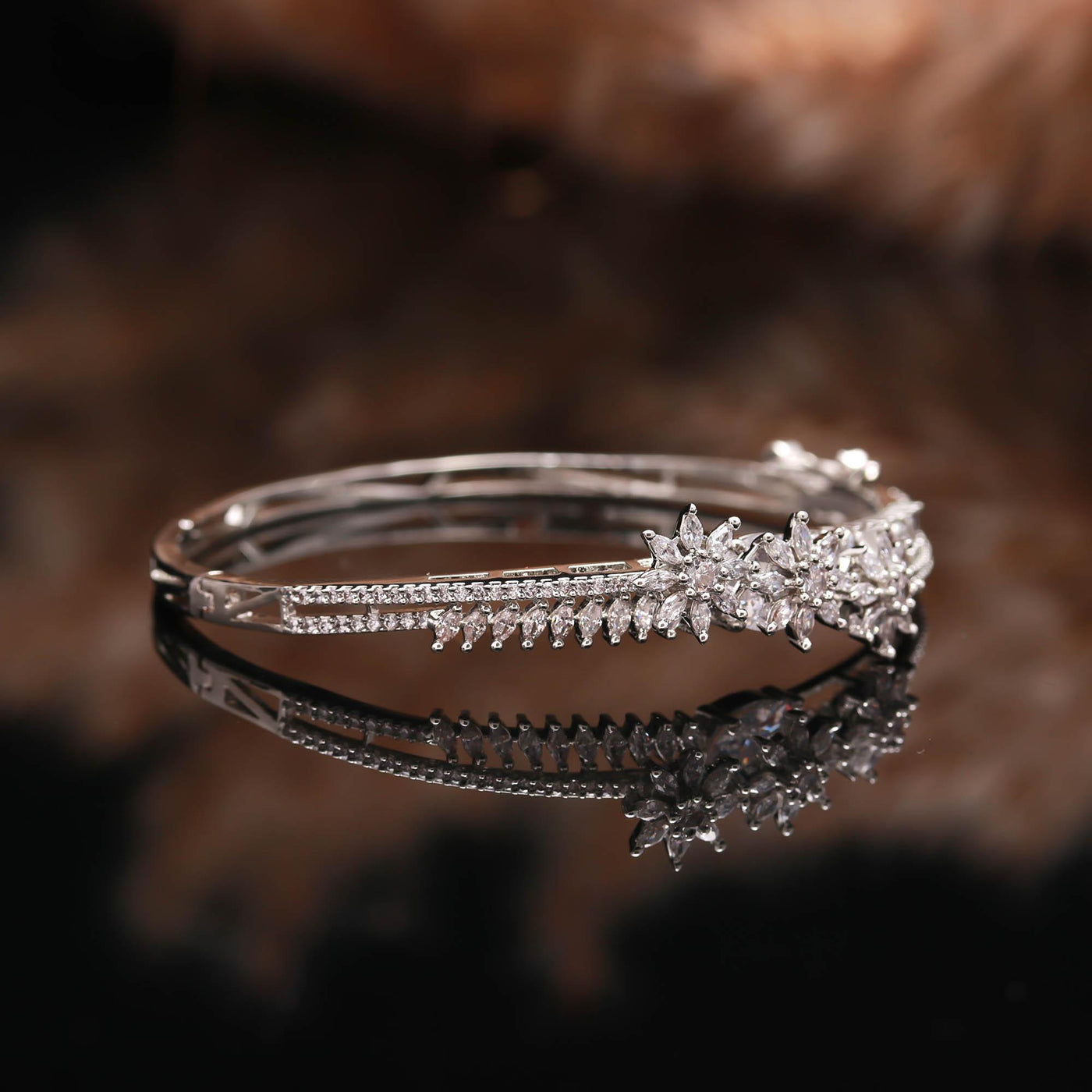 The Moonlit Pave is pure, delicate moonlight for your wrist. This slender Silver Kada is designed for the modern trend of stacking, offering a continuous, bright line of micro-pave AD Stones. It's lightweight but incredibly durable, thanks to its fortified base and Anti-Tarnish Coating. Enjoy the effortless elegance of silver without the need for constant polishing. This is your essential, Low-Maintenance Jewellery piece for layering or wearing solo.