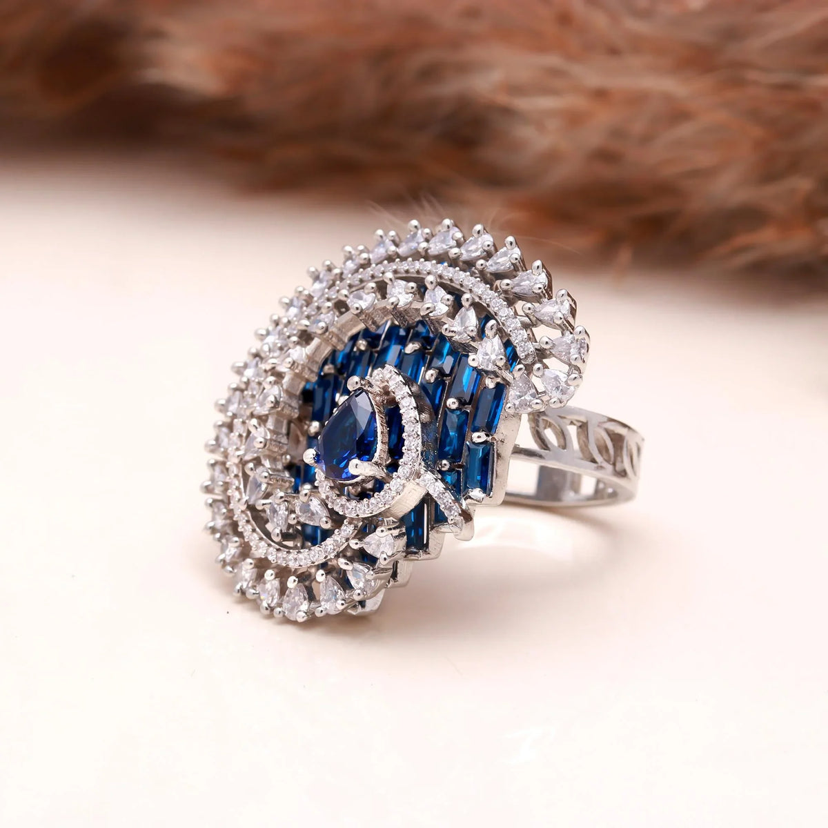 Royal Blue Sapphire Statement Ring for Women – Elegant Silver Plated Cocktail Ring with Sparkling CZ Diamonds | Haamsi Jewellery