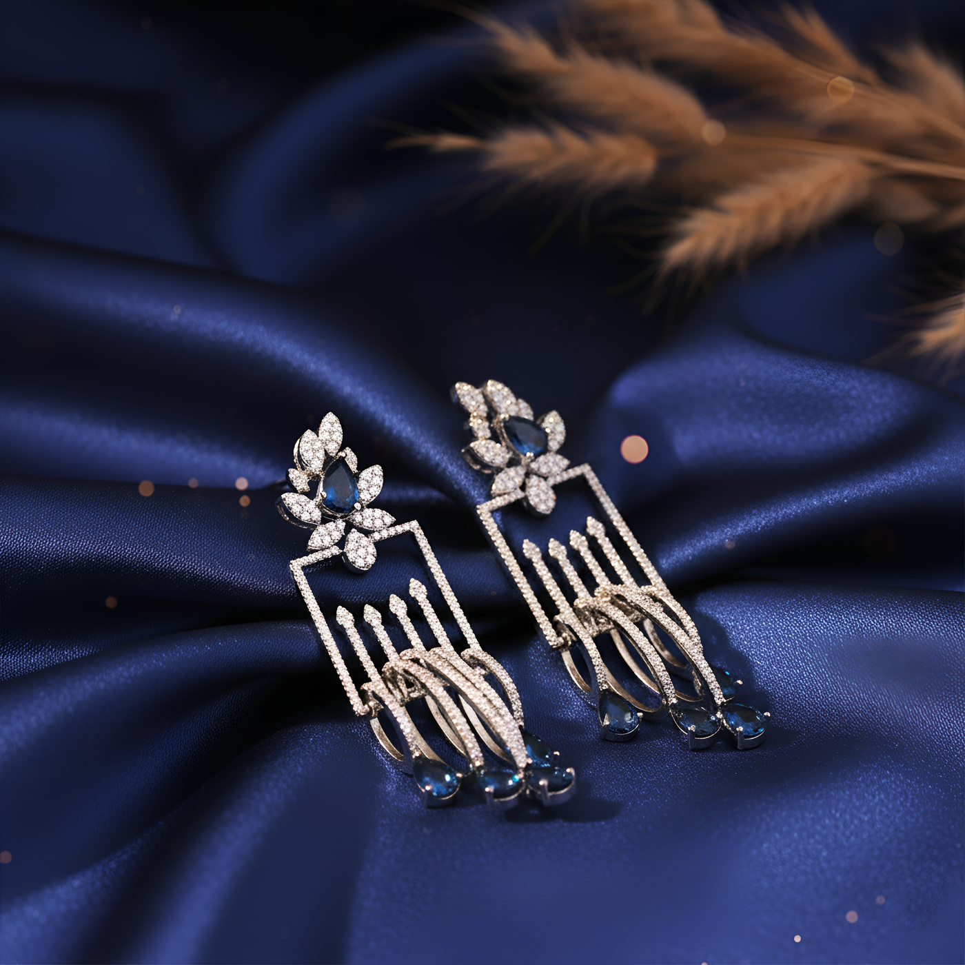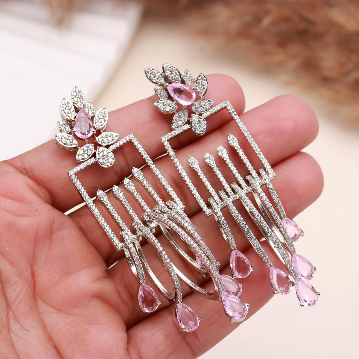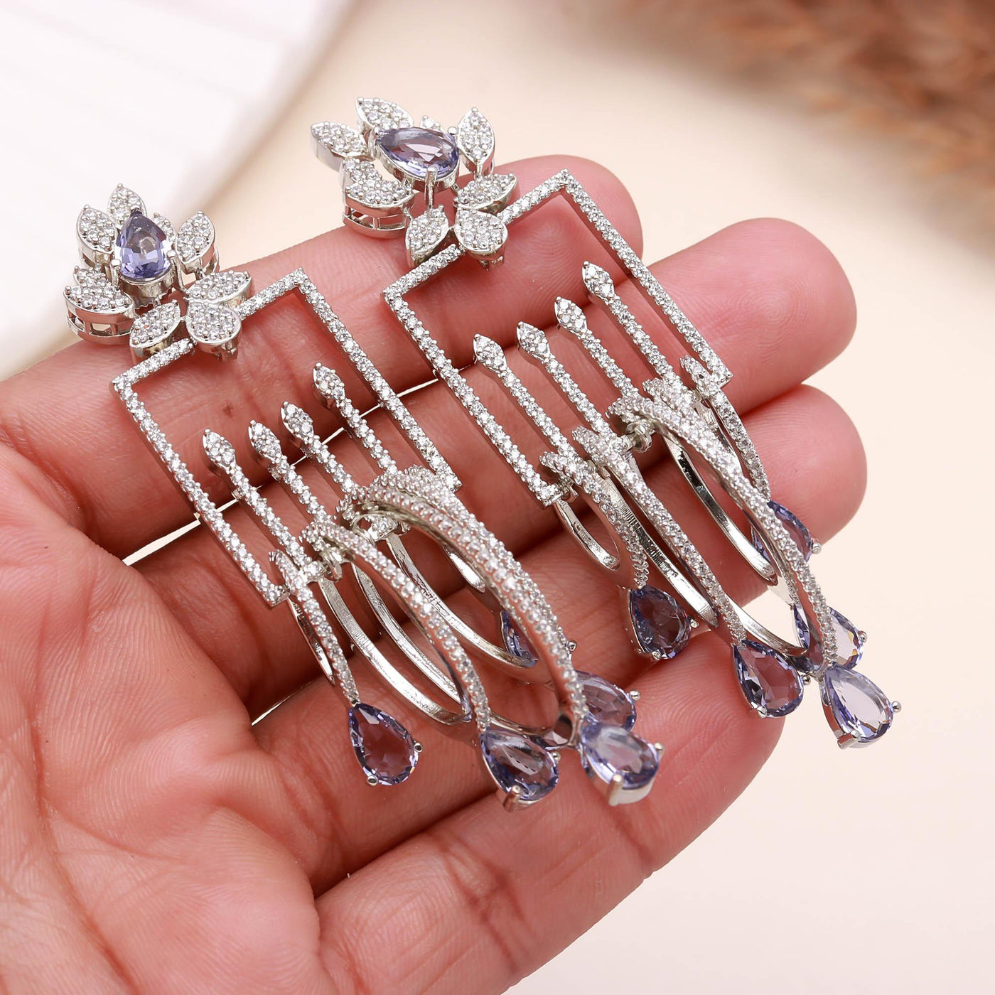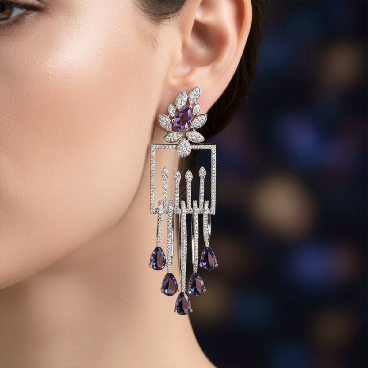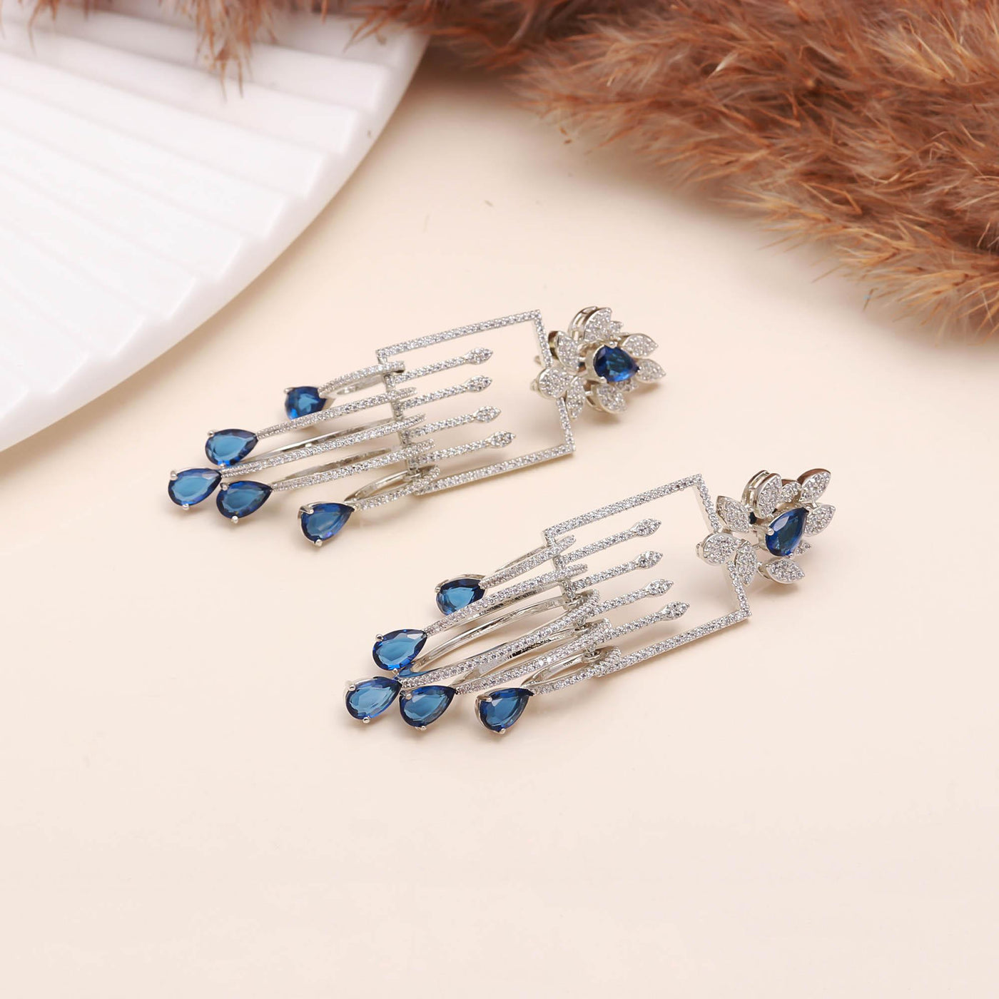 These luxury drop earrings are crafted using high-quality alloy with a rhodium-plated finish, ensuring long-lasting shine and resistance to tarnish. The lightweight structure provides comfort even when worn for extended periods, making them perfect for weddings, receptions, parties, or festive celebrations. Whether paired with a designer gown, saree, or evening dress, these earrings elevate your look instantly with their enchanting sparkle and sophisticated aura.
