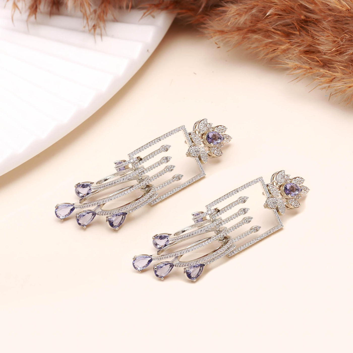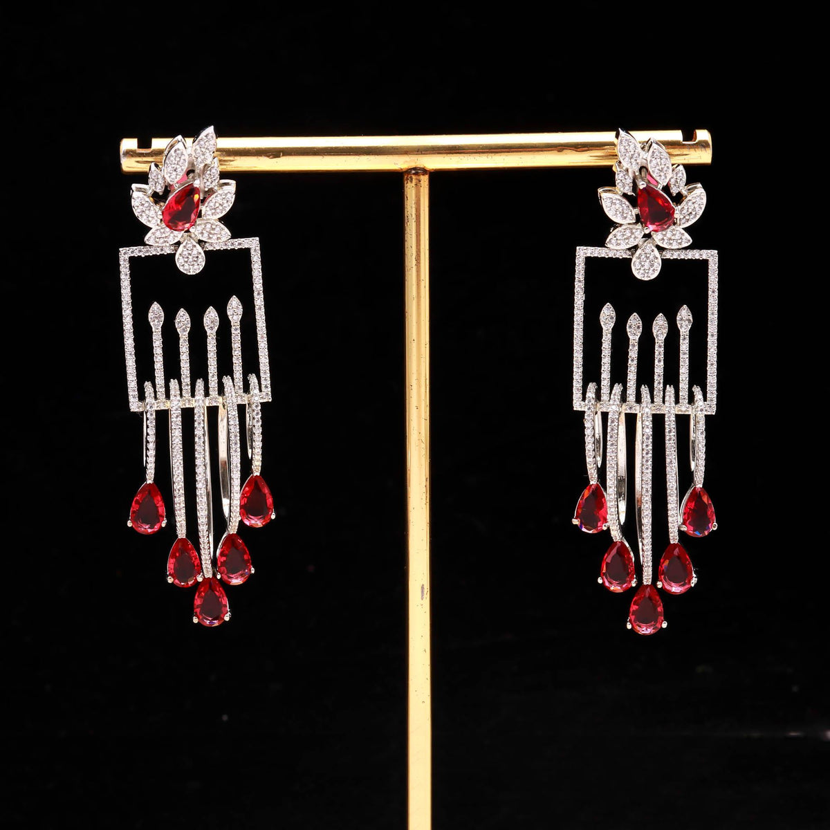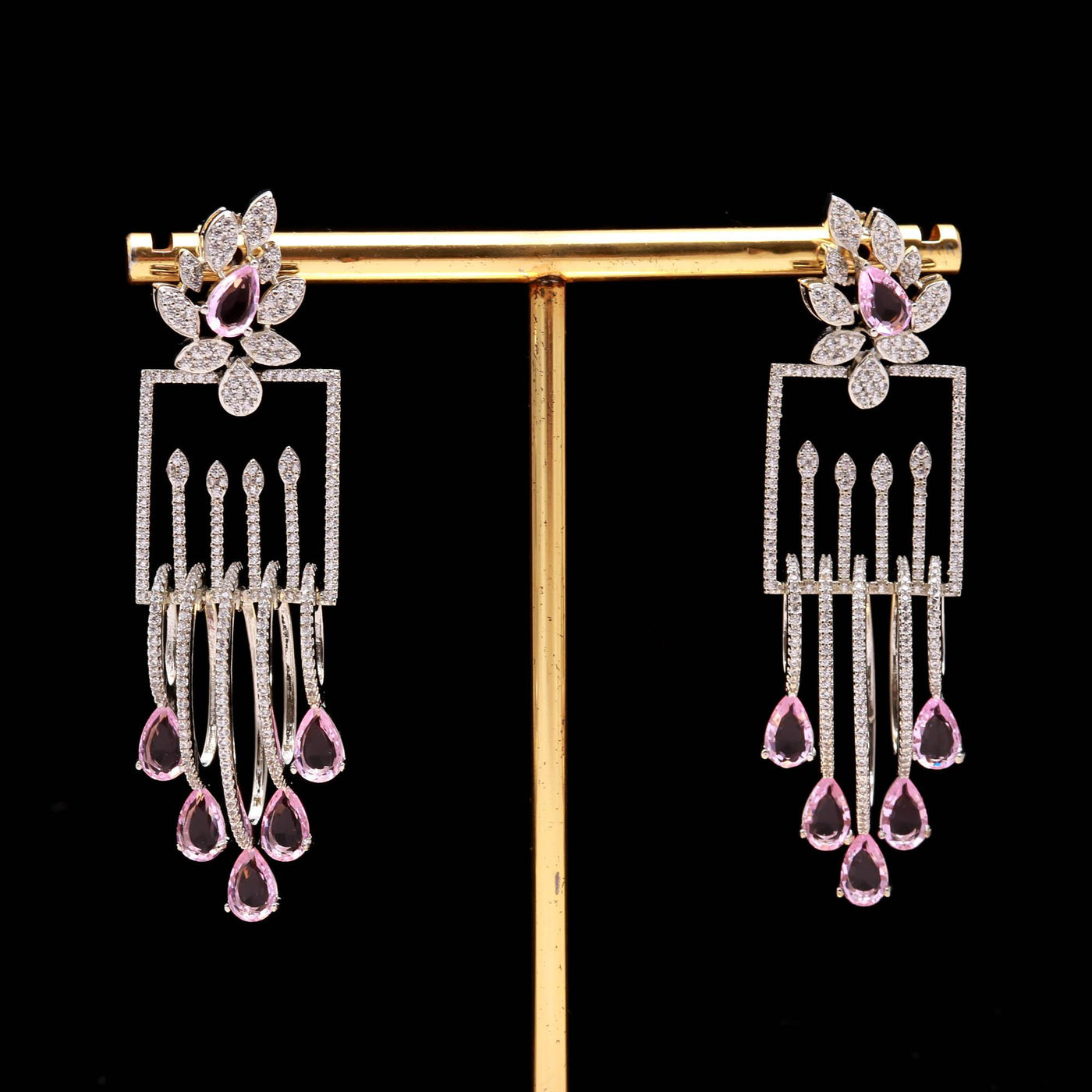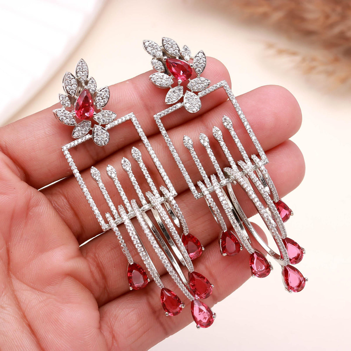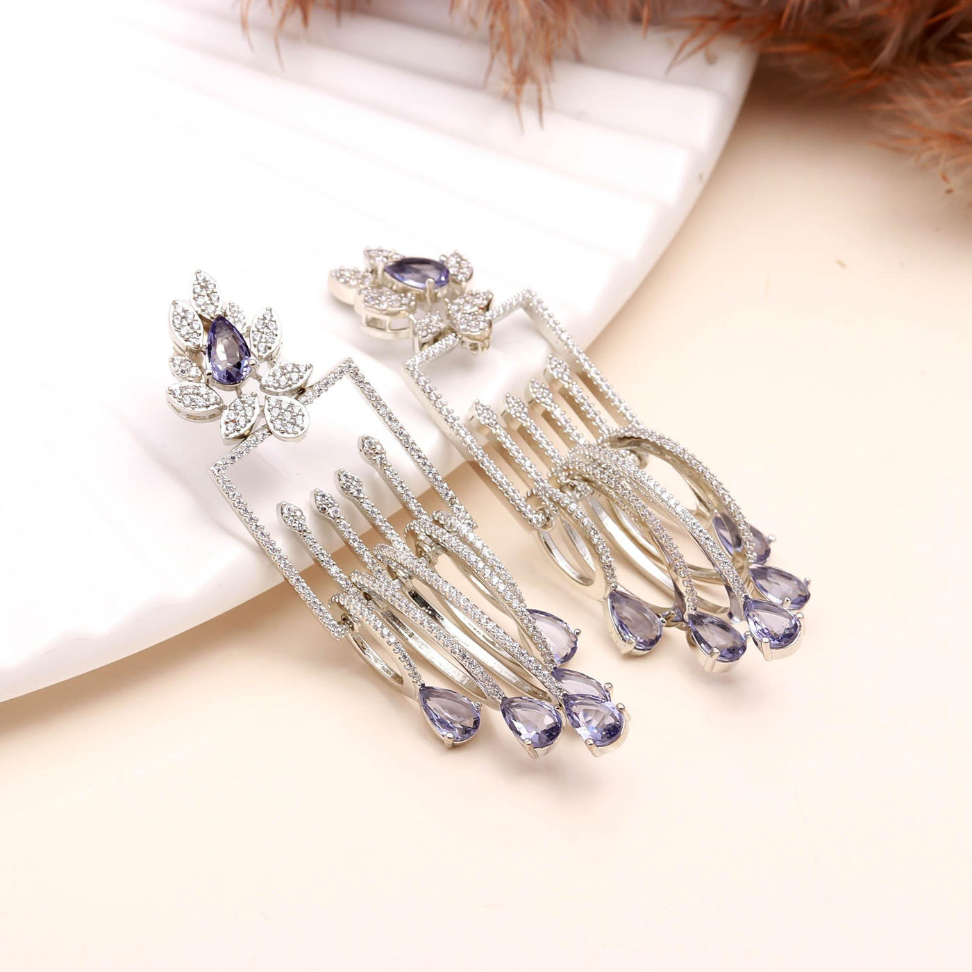 These luxury drop earrings are crafted using high-quality alloy with a rhodium-plated finish, ensuring long-lasting shine and resistance to tarnish. The lightweight structure provides comfort even when worn for extended periods, making them perfect for weddings, receptions, parties, or festive celebrations. Whether paired with a designer gown, saree, or evening dress, these earrings elevate your look instantly with their enchanting sparkle and sophisticated aura.
